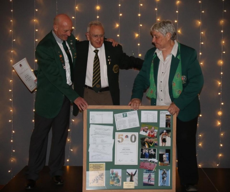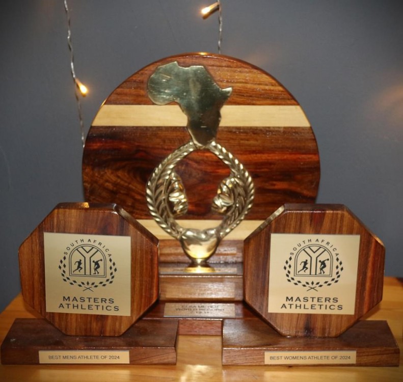 Ansie Hennop (SAMA President) and Ian Hacker (Vice President) each received an award for 30 years involvement in Masters Athletics